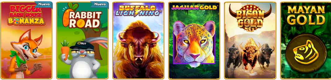 - Buffalo Lightning – temática de búfalos con multiplicadores y premios altos.