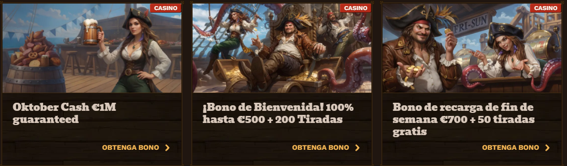 Los bonos y promociones de FatPirate Casino están diseñados para atraer tanto a nuevos jugadores como a los ya registrados. La plataforma combina ofertas de bienvenida, torneos y recargas especiales con tiradas gratis, lo que permite disfrutar de una experiencia más completa y dinámica.