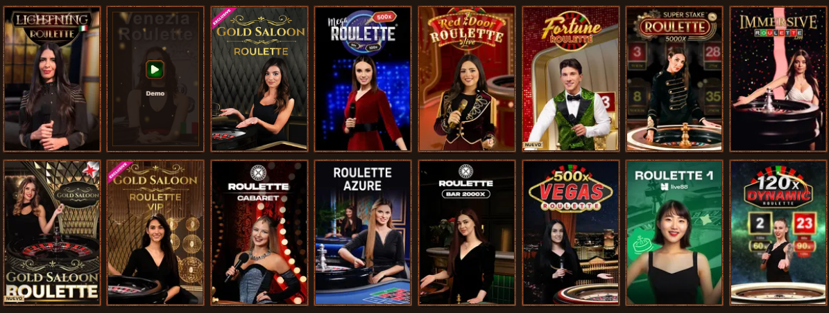 - Ruleta: europea, francesa, americana y versiones en vivo.
