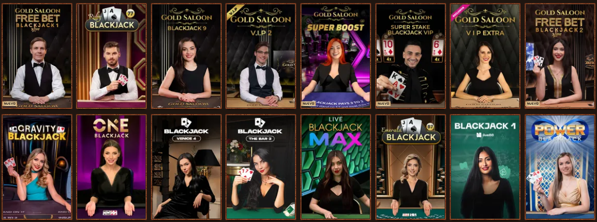 - Blackjack: modalidades clásicas y modernas, también en vivo.