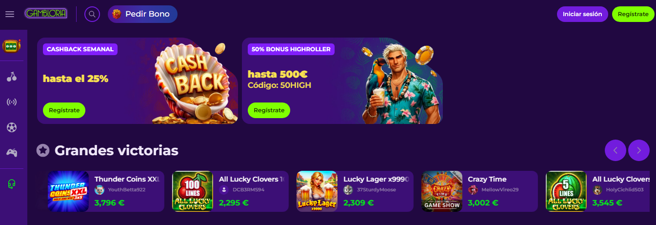 La sección de jackpots en Gambloria es una de las más llamativas, ya que combina títulos clásicos con botes progresivos y fijos, lo que permite acceder a premios acumulados que pueden superar fácilmente las cinco cifras.