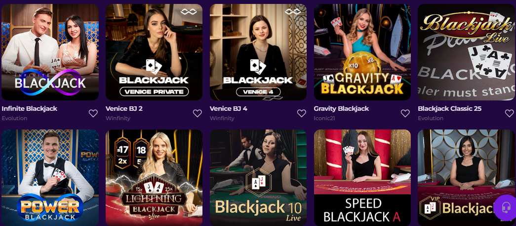 Gambloria dedica un apartado destacado al blackjack, uno de los juegos de mesa más demandados en los casinos online. Su catálogo incluye mesas clásicas, variantes innovadoras con multiplicadores y opciones VIP, todas operadas por proveedores de prestigio como Evolution Gaming, Winfinity e Iconic21.