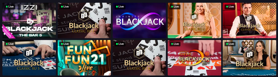 - Blackjack Clásico (RU & EN) – varias mesas tradicionales en diferentes idiomas.