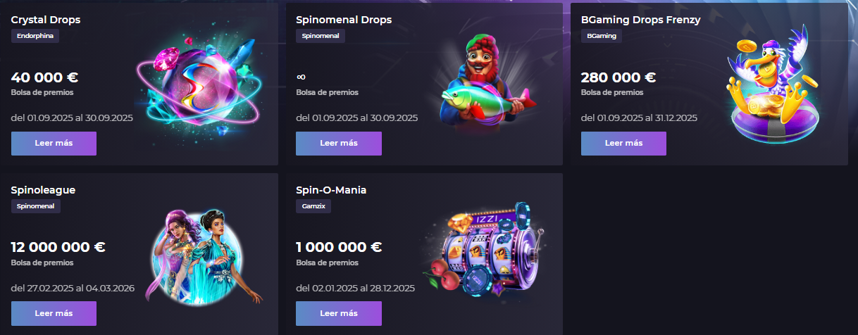 - Spin-O-Mania (Gamzix): bolsa de 1.000.000 €, activa del 02.01.2025 al 28.12.2025.