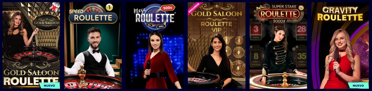 - 🎡 Ruleta: europea, americana, francesa y ruletas en vivo con crupier real.