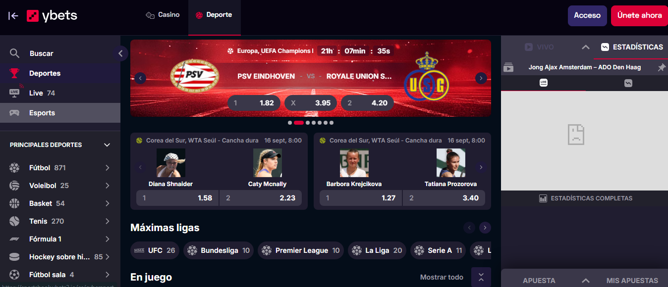 Los deportes virtuales en Ybets simulan competiciones con resultados generados por RNG y ciclos muy rápidos, disponibles 24/7. Ideales para sesiones cortas, permiten apostar antes de cada evento en mercados conocidos (1X2, hándicap, más/menos, ganador).