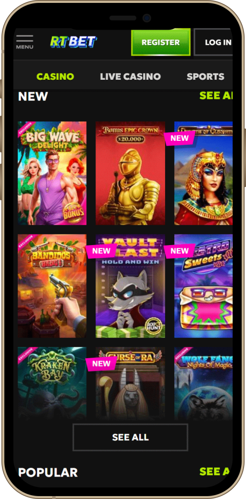 La selección de juegos de RTBet Casino es bastante amplia y diversa, ideal para quienes buscan variedad. Hay slots, juegos de mesa tradicionales, juegos en vivo, botes progresivos y más.