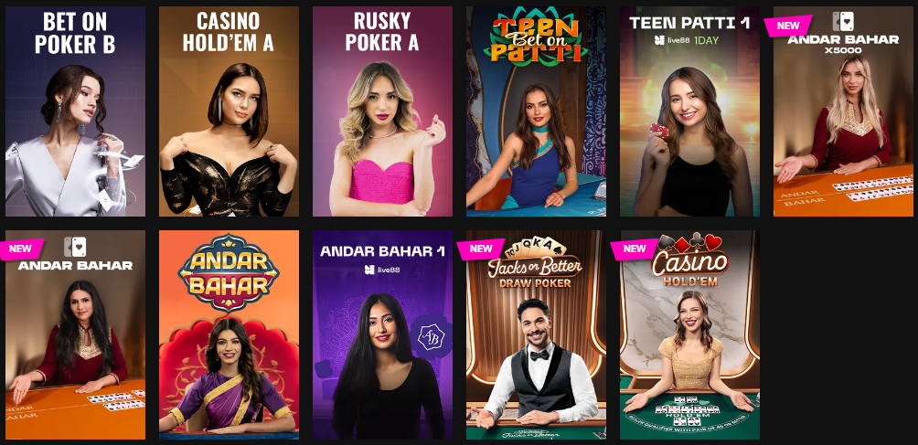 - Variedad cultural: incluye tanto póker internacional como juegos de estilo asiático/indio.